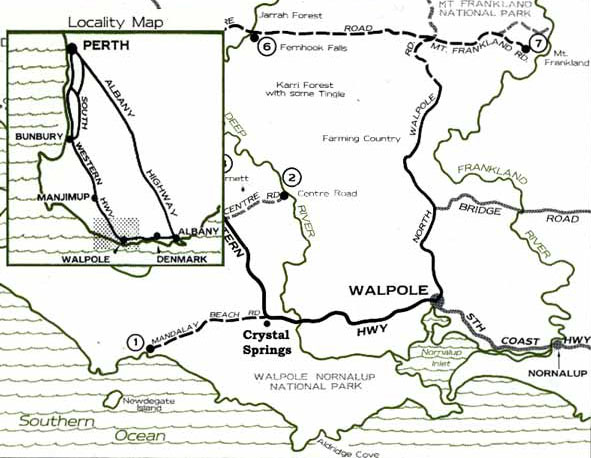 The main Transwa bus service runs past the front gate and picks up in Walpole. It connects with the Perth train in Bunbury or with the port and airport at Albany.